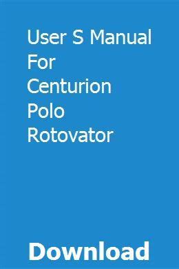 Everyone knows that reading User S Manual For Centurion Polo Rotovator is effective, because we are able to get too much info online from your resources. Technologies have developed, and reading User S Manual For Centurion Polo Rotovator books may be far easier and much easier. We can easily read books on the mobile, tablets and Kindle, etc. Hence, there are many books being received by PDF format.Below are some websites for downloading free PDF books which you could acquire as much knowledge as you wish. Today everybody, young and aged, should familiarize themselves together with the growing eBook market. Ebooks and eBook readers provide substantial benefits more than traditional reading. Ebooks slice down on the make use of of paper, as advocated by environmental enthusiasts. Presently there are no fixed timings for study. There is usually no question of waiting-time for new editions. Presently there is no transportation to be able to the eBook shop. The particular books in a eBook shop can be downloaded instantly, sometimes for free, occasionally to get a fee.